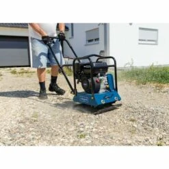 Mit dieser Maschine lassen sich Sand, Kies, Schüttgut und weicher Boden einfach und schnell verdichten.